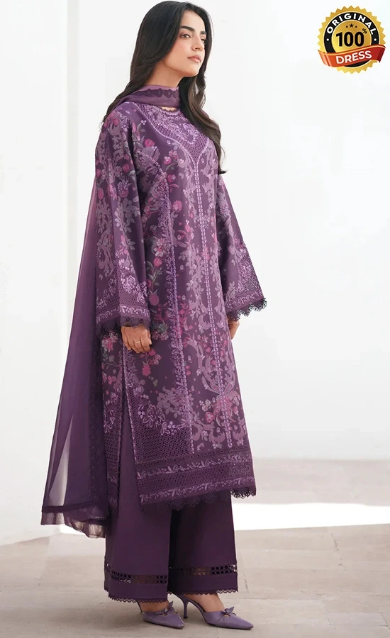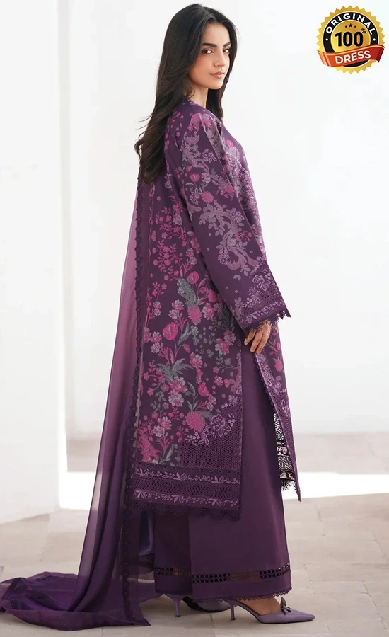 • Digital printed back 1 pc purple printed lawn