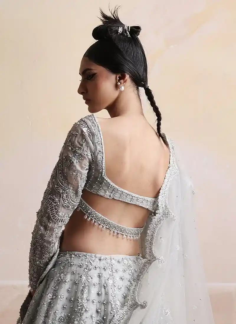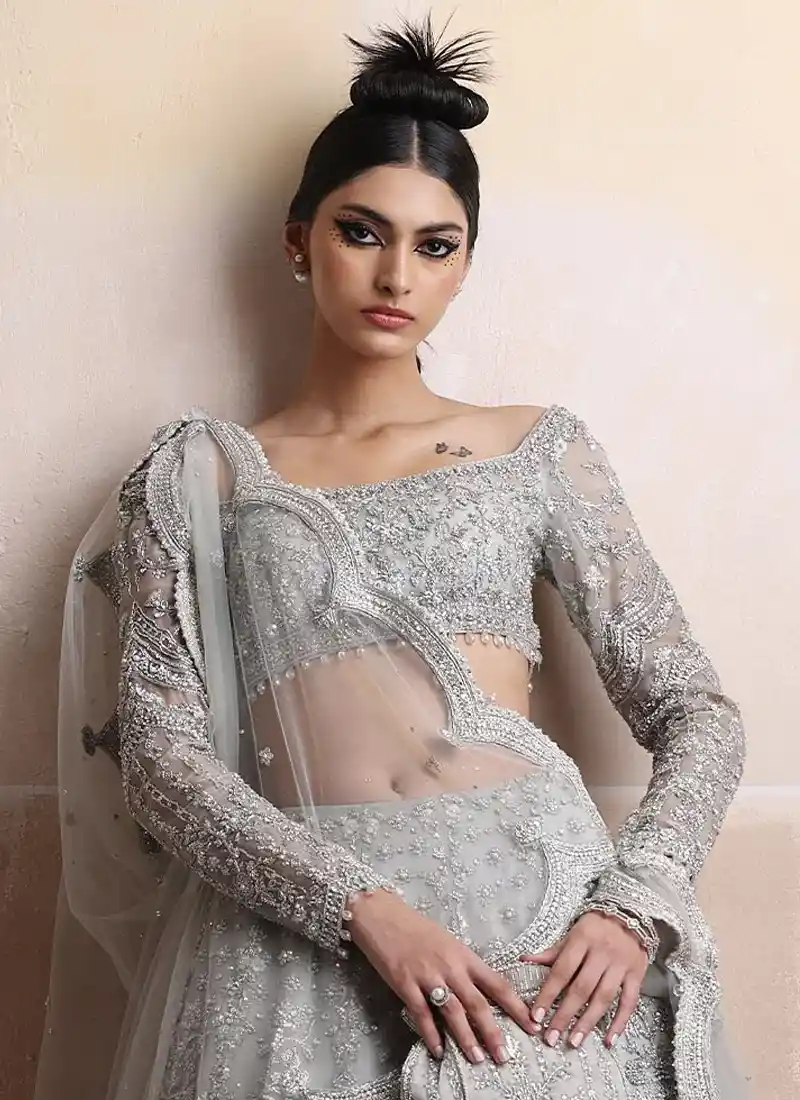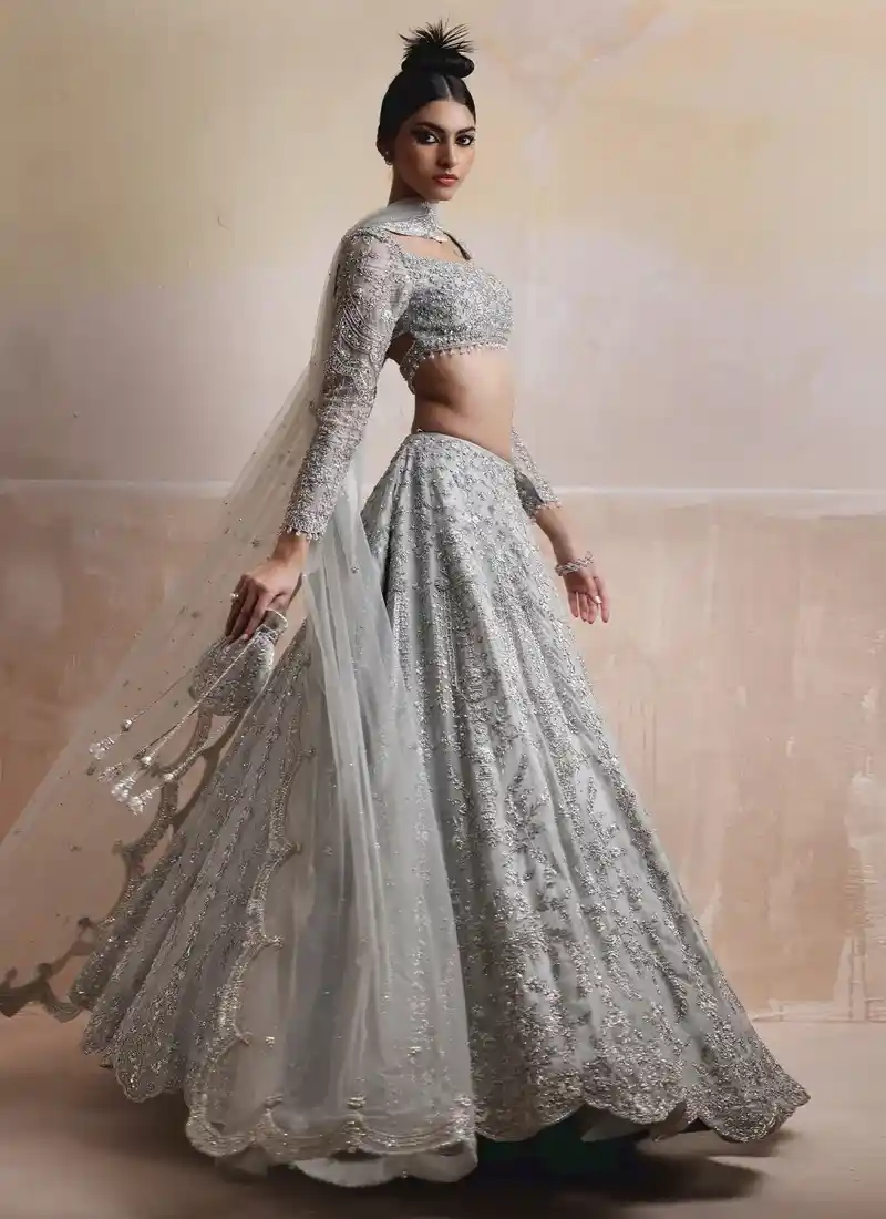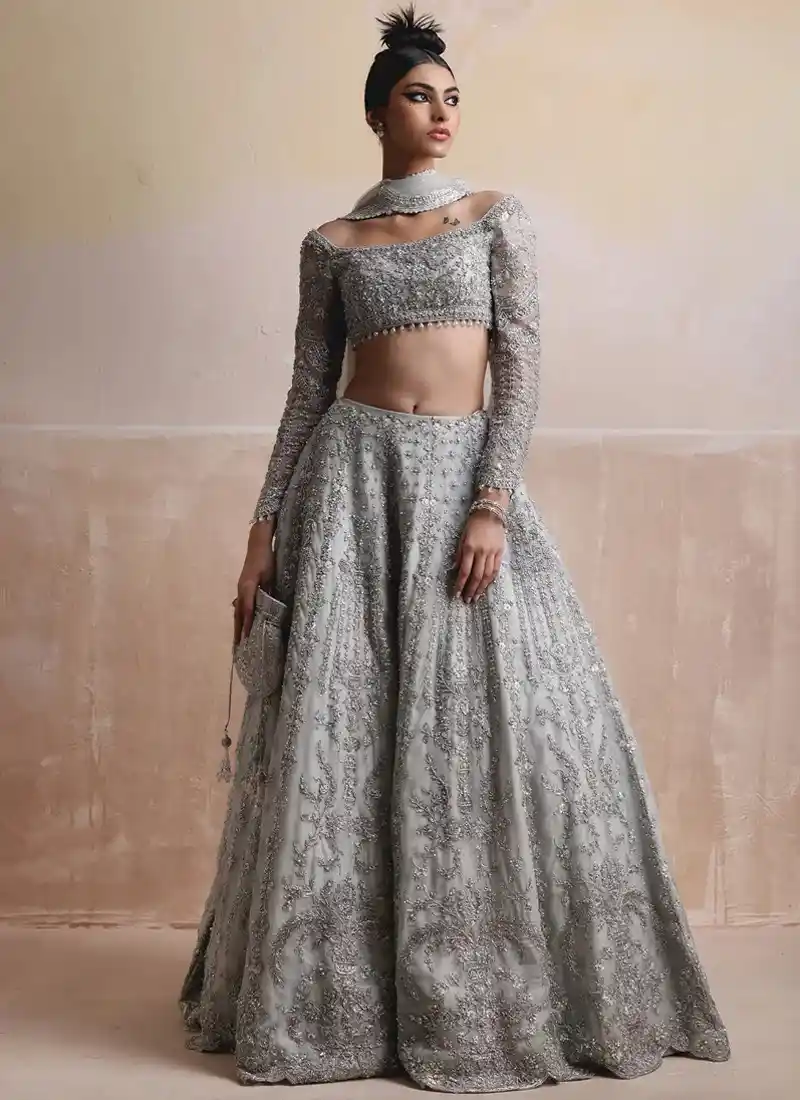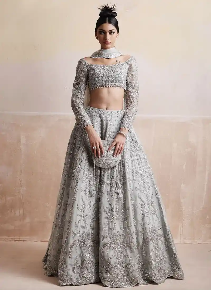 Gray Silver Bridal Lehenga Choli