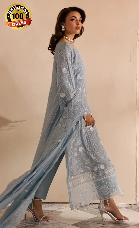 - A delicate chiffon dupatta with embroidery details.