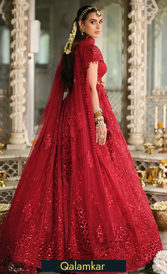 Buy Qalamkar Red Colour Lehenga Choli Dress For Wedding Guests Now!