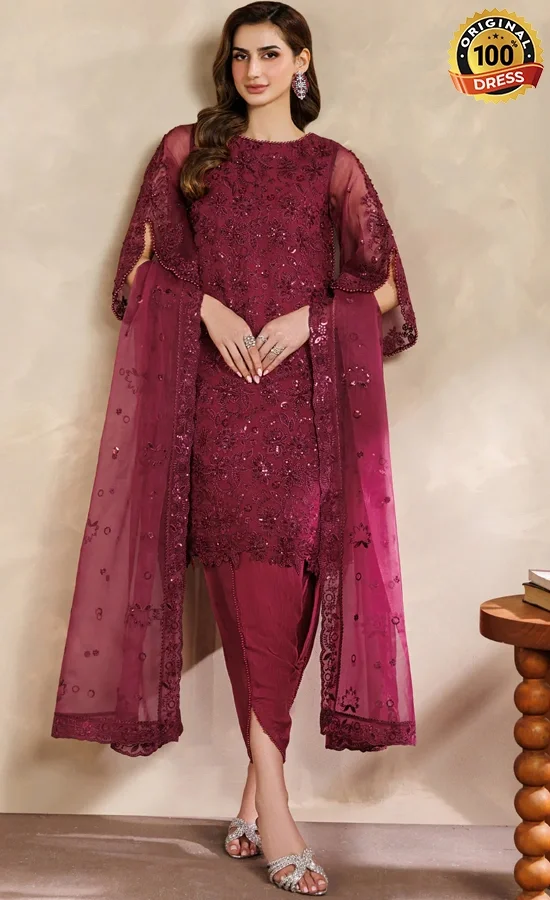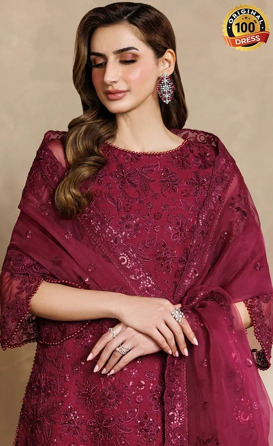 Buy Zarif PK Emberoidered Organza ZYR-SURKH-01 Dress Now!
